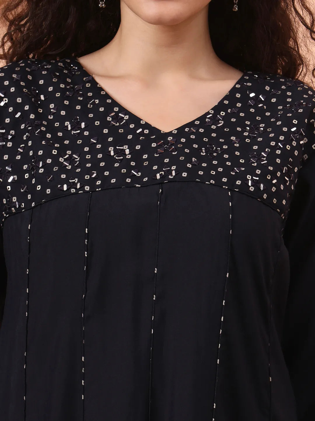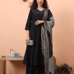 Navy Blue Silk Blend Piping Design Anarkali Kurta Dupatta Palazzo Set