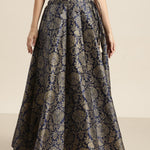 Navy Jacquard Floral Anarkali Skirt, in Jacquard fabric, Cotton Lining, Full Length, Fit & Flare, Zipper Closure, Flared Hemline and features Zari Thread Tassel Details