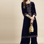 Navy Velvet Floral Zari Embroidery Kurta