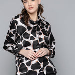 Nude Animal Print Satin Shirt , in Satin fabric, Unlined, Regular Length, Comfort Fit, Button Closure, Straight Hemline and features DTM Button At Front