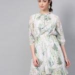 Off-White Floral Skater Dress , in Georgette fabric, Polyester Lining, Knee Length, Fit & Flare, Button Closure, Straight Hemline and features Cascading Frill At Front