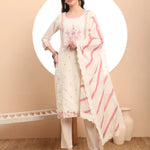 Off-White Pure Handloom Cotton Thread Work Kurta Dupatta Pant Set