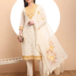 Off-White Pure Handloom Cotton Weaved Thread Work Kurta Dupatta Pant Set