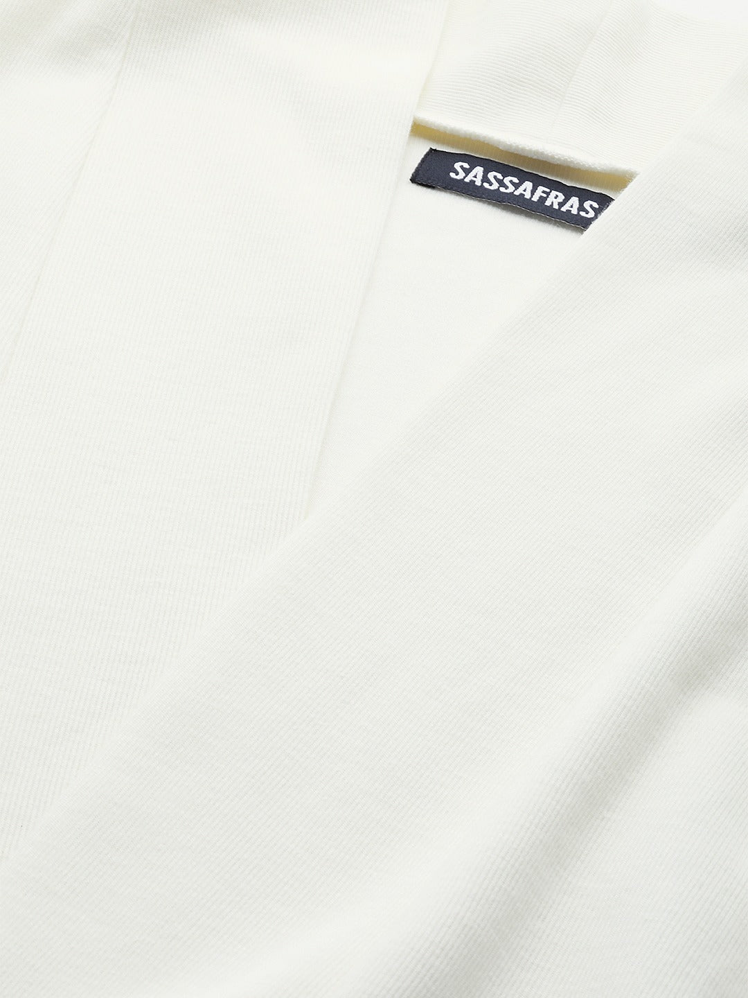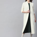 Off White Rib Front Open Longline Shrug, in Flat Rib fabric, Unlined, Ankle Length, Comfort Fit, No Closure, Straight Hemline and features Patch Pocket At Front