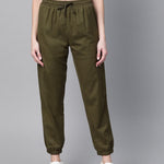 Olive Side Pocket Joggers, in Cotton Linen fabric, Polyster, Ankle Length, Comfort Fit, Elasticated Waistline, Straight Hemline and features Patch Pocket At Both Side