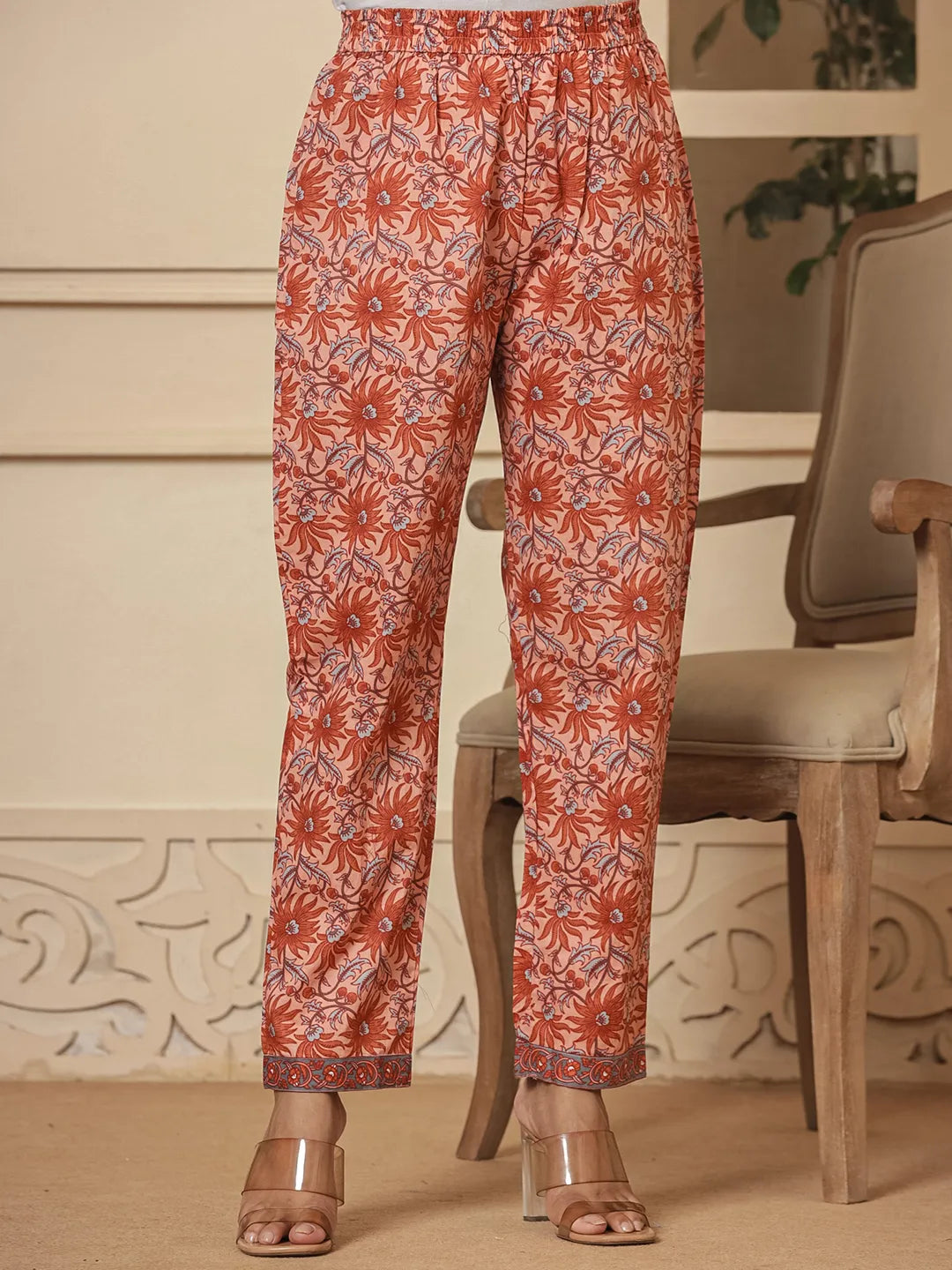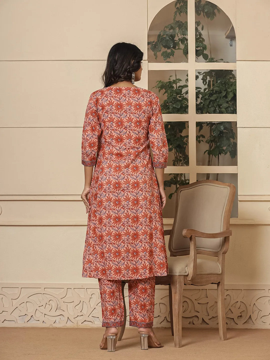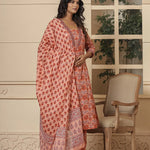 Peach Cotton Sequins Work Kurta Dupatta Set