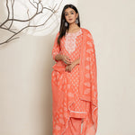 Peach Ethnic Motifs Cotton Straight Kurta Dupatta Set
