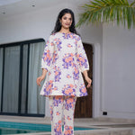 Peach Floral Print Top And Trouser Co Ord Set