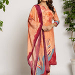 Peach Pure Crepe Placement Print Kurta Dupatta Set