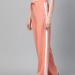 Peach Terry Side Tape Drawstring Pants, in Terry fabric, Unlined, Full Length, Comfort Fit, Drawstring Closure, Flared Hemline and features Contrast Tape Detail At Side