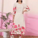 Pink And Cream Cotton Floral Print Straight Kurta Trouser Set