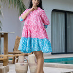 Pink & Sky Blue Pure Cotton Colour Blocking Dress