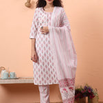 Pink And White Pure Cotton Kurta Dupatta Pant Set