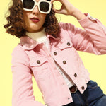 Pink Corduroy Trucker Jacket, in Corduroy fabric, Unlined, Regular Length, Comfort Fit, Button Closure, Straight Hemline and features 2 Pockets At Front