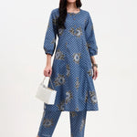 Blue Cotton A Line Kurta Set