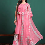 Pink Cotton Aline Sleeveless Kurta Palazzo Dupatta Set