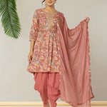 Pink printed Kurta with Dhoti Pants with dupatta