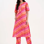 Pink Pure Cotton Leheriya A-line Kurta Trouser Set