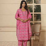 Pink Cotton Sequins Work Kurta Dupatta Set