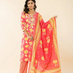 Pink Cotton Sequins Work Straight Kurta Dupatta Pant Set