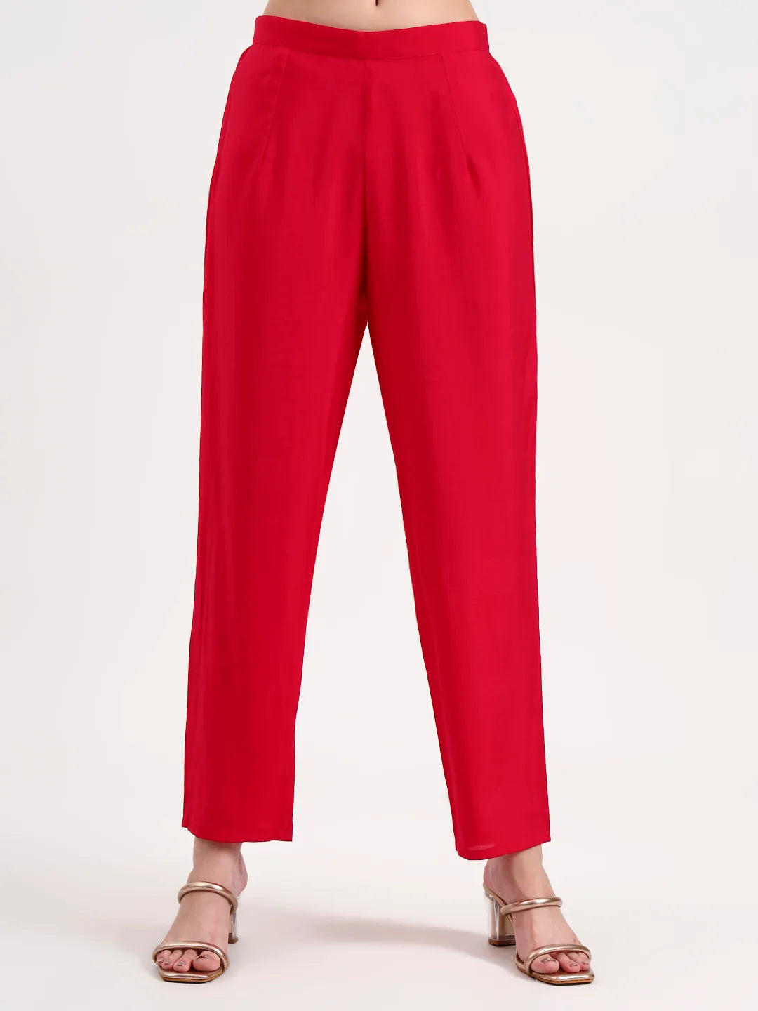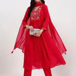 Pink Embroidered Chanderi Silk A-Line Kurta Trouser Dupatta Set