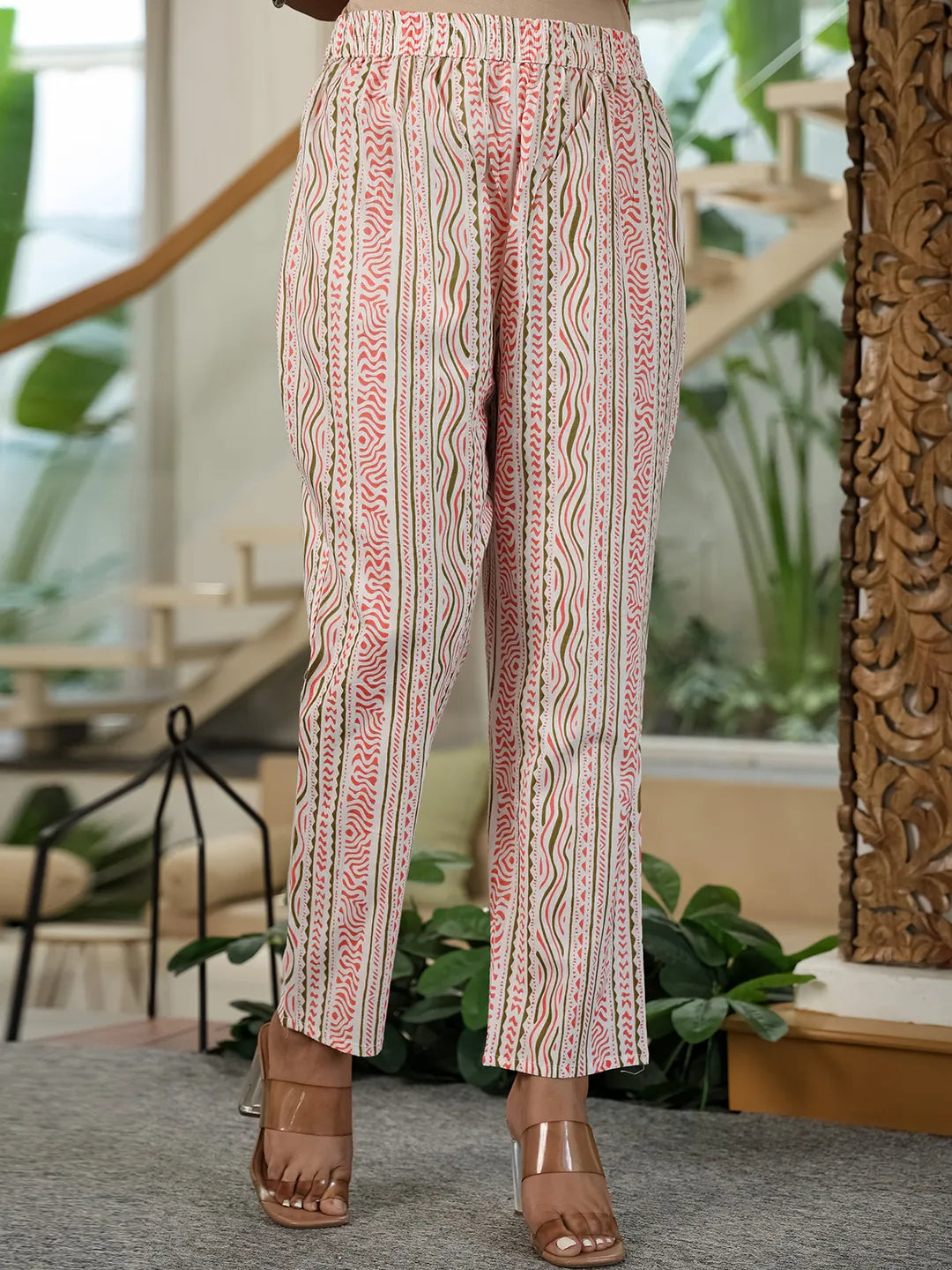 Pink Floral A-Line Kurta Trouser Dupatta Set With Lace Work