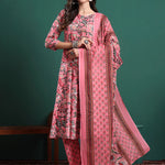 Pink Floral Print Maternity A-Line Kurta Trouser Dupatta Set