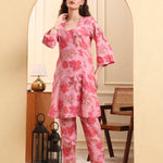 Pink Floral Print Pure Cotton V-Neck A-Line Kurta Trouser Set