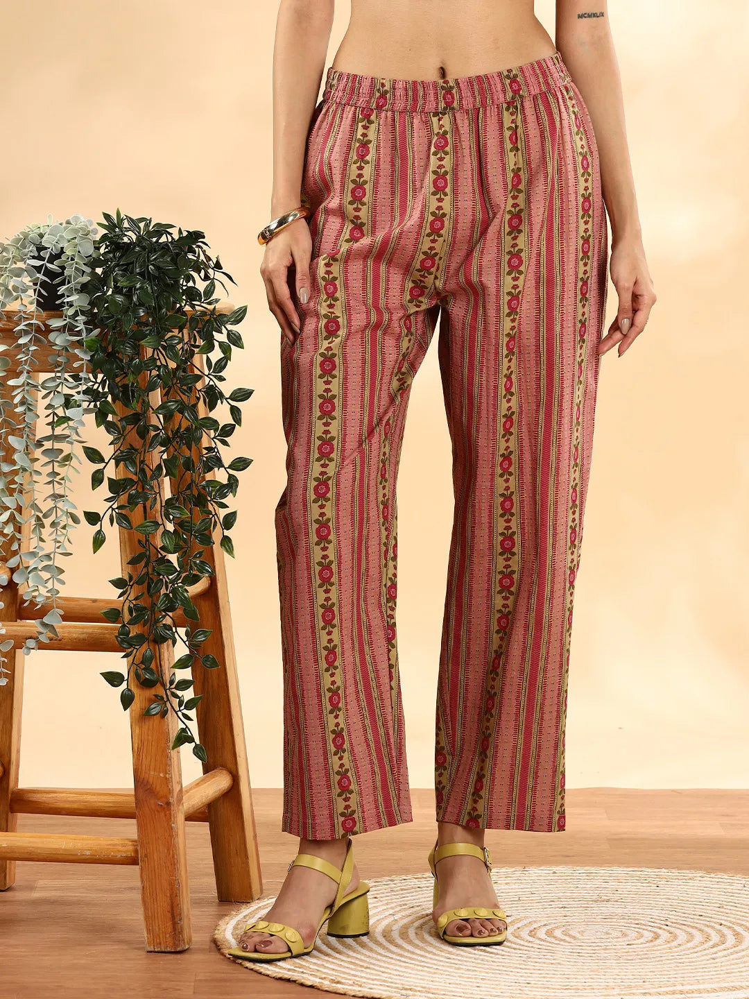 Pink Floral Anarkali Kurta And Trouser with dupatta