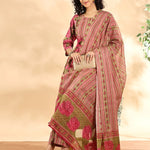 Pink Floral Print Sequins Work Anarkali Kurta And Trouser With Dupatta Set