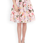 Pink Floral Silk Skirt in Silk fabric, Poly Crepe lining, Loose Fit, Zipper closure, Flared hemline