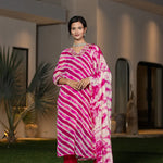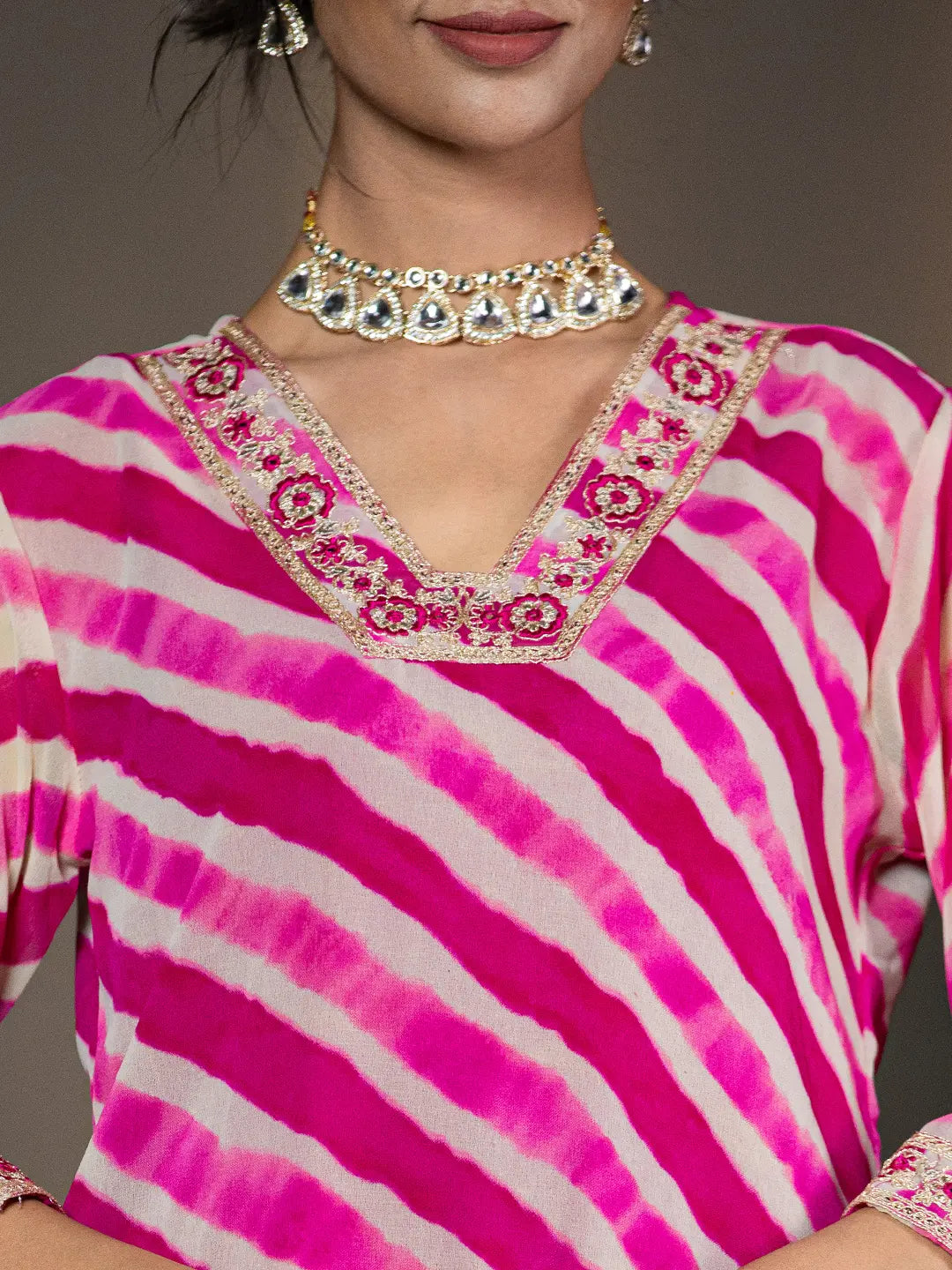 Pink Leheriya Print Poly Georgette Straight Suit Set
