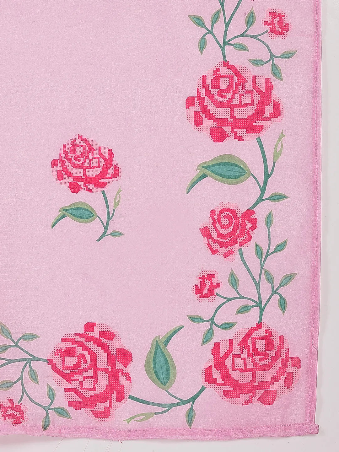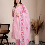 Pink Pure Cotton A-Line Pleated Kurta Dupatta Pant Set