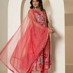 Pink & Blue printed Kurta with Trousers with dupatta