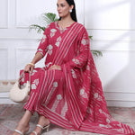 Pink Pure Cotton Floral Thread Work Kurta Dupatta Pant Set