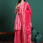 Pink Pure Cotton Striped Kurta Palazzo & Dupatta Set