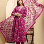 Pink Pure Cotton Thread Work Anarkali Kurta Trouser Dupatta Set