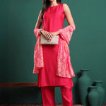 Pink Silk Blend Sleeveless Kurta Pants & Dupatta Set