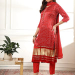 Maroon Gajji Silk Bandhani Embroidered Kurta With Trousers With Dupatta Set