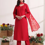 Pink Solid Straight Kurta Trouser And Dupatta Set