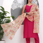 Pink Solid Straight Silk Blend Sleeveless Kurta Trouser Dupatta Set