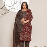 Maroon Floral Print Cotton Plus Size Kurta Dupatta Set
