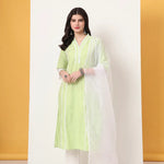 Premium Cotton Poplin Green Kurta Dupatta Pant Set