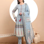 Premium Mul Cotton Blue Kurta Dupatta Pant Set
