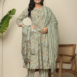 Green printed Kurta with Trousers with dupatta