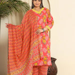 Pure Cotton Pink Kurta Dupatta Pant Set With Handwork