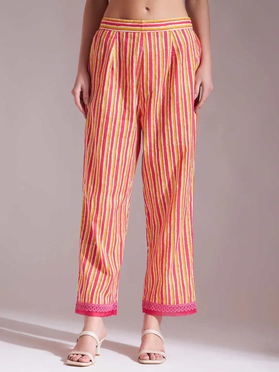 Pure Cotton Pink Kurta Dupatta Set With Lace Detailing