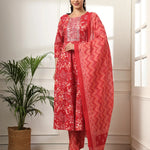 Red printed Kurta with Trouser with Dupatta