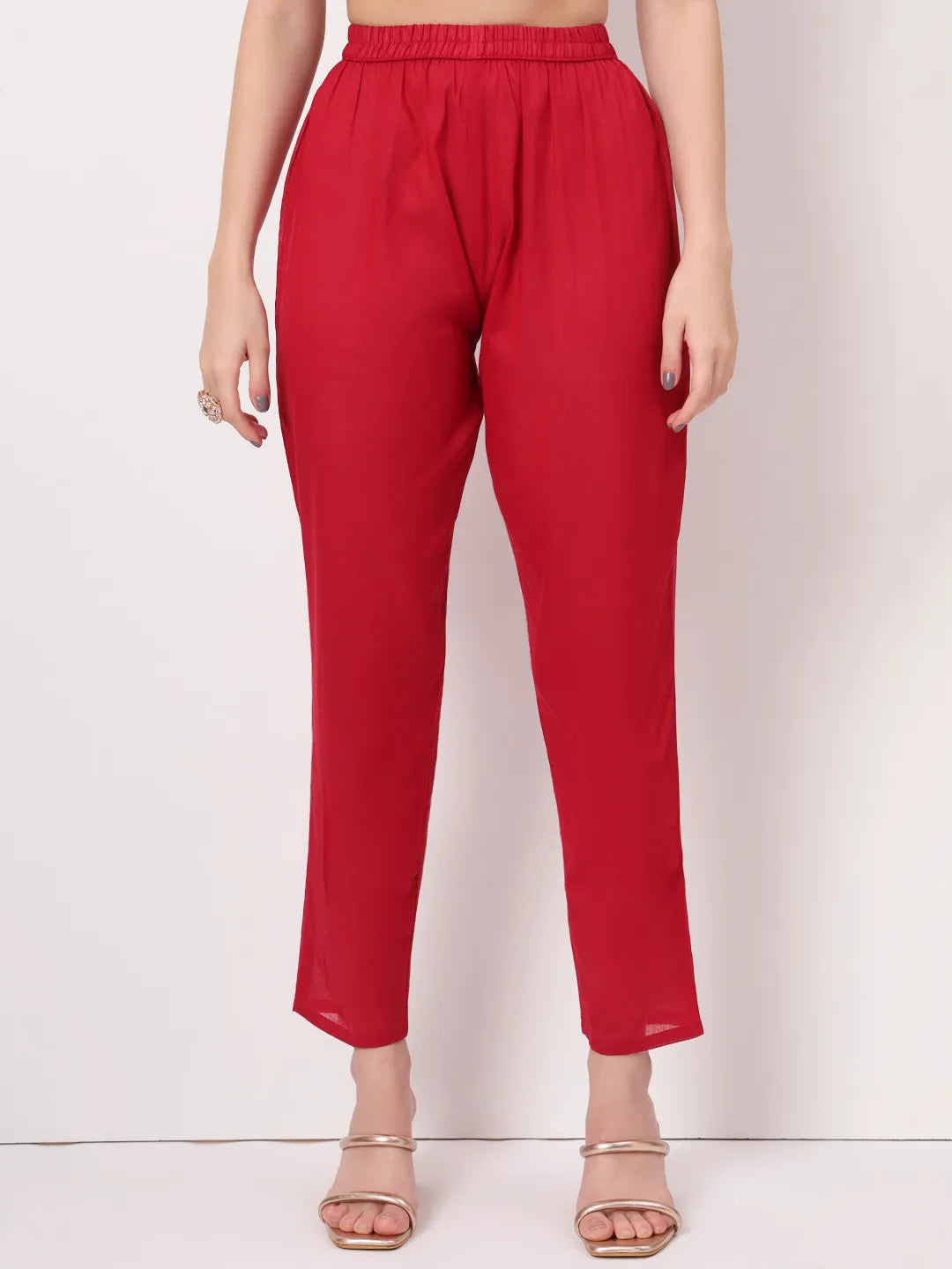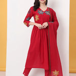 Pure Cotton Red Anarkali Kurta Dupatta Pant Set