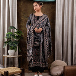 Pure Muslin Silk Black Ethnic Motifs Kurta Dupatta Set